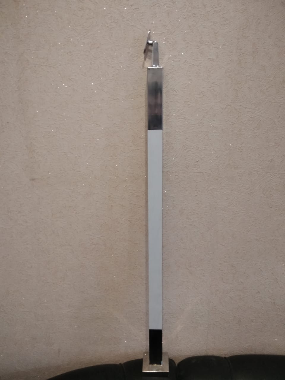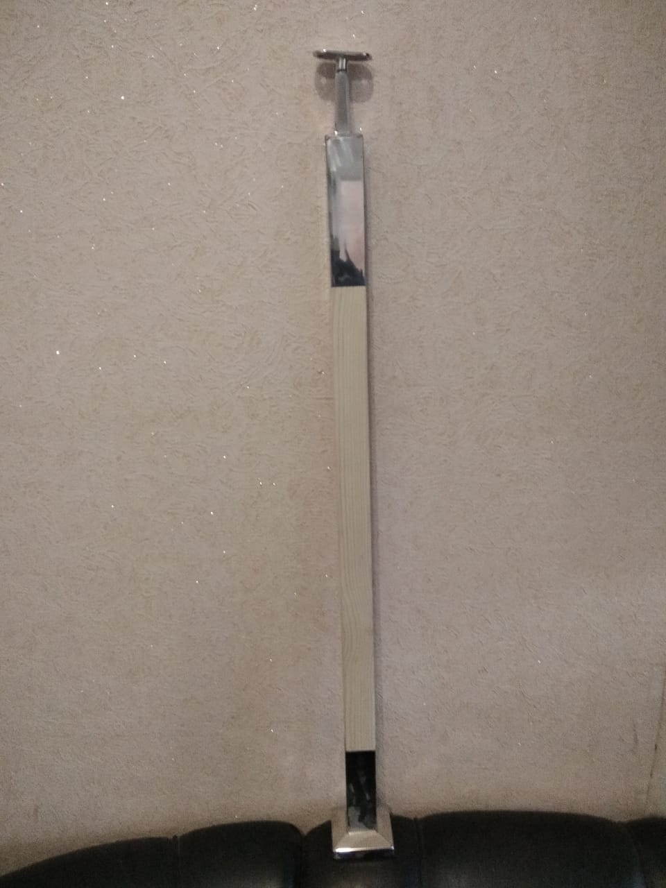 Балясина квадратная комбинированная размером 850х40х40 мм. с дубовой вставкой и элементами из нержавеющей стали. Основание фланца 80х80 мм. Высота балясины может быть изменена за счет удлиннения вставки.