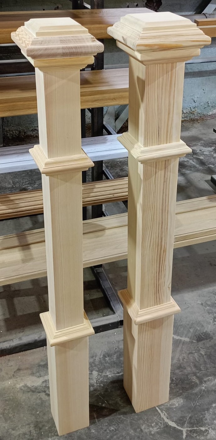 Столб из сосны с шапочкой толщиной 100 и 120 мм.